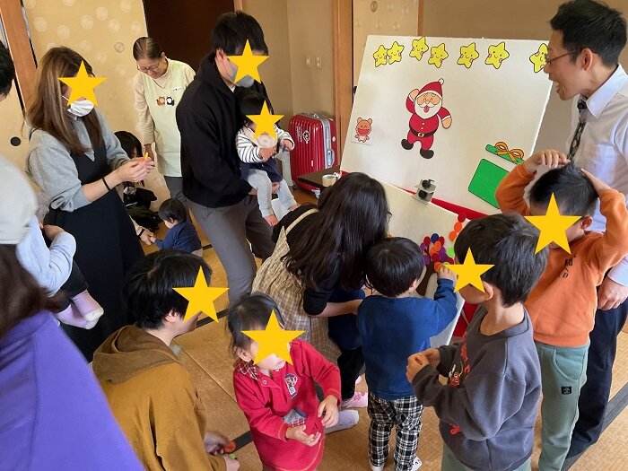 パネルシアターでは、参加者もパネルを貼って、みんなでクリスマスツリーを完成させました。