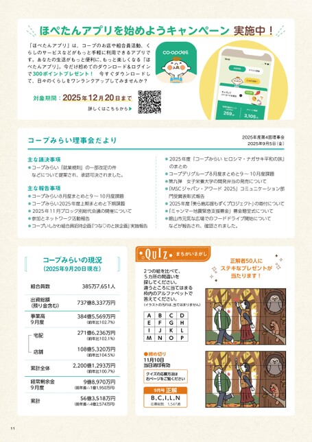 おすすめ!コープの商品産直北海道産味付数の子(昆布しょうゆ味)02丁寧な作業が生むパリッとした歯ごたえと自然な色おせち料理でおなじみの数の子。国内一の産地である北海道では、国産・無漂白にこだわった商品が、手間暇かけて作られています。産直北海道産味付数の子(昆布しょうゆ味)ができるまで腹立て・急速凍結1~3月、産卵期のニシンが石狩湾で水揚げされ、加工場に運ばれます。卵巣は生の状態だとやわらかいため、まず冷凍。卵巣が変形しないよう腹を上にしてニシンを並べ、冷凍庫に入れます。解凍・腹出し5月頃から加工作業を開始。まず冷凍していたニシンを水に漬け、空気を入れて泡立てながら均一に解凍します(写真A)。作業場(B)へ移したら、卵を傷つけないよう先端が丸くなった包丁で腹を割き(C)、卵巣を素早く取り出します(D)。身は身欠きニシンなどの原料に。DCAB戻ってきたニシンはじけるような独特の歯ごたえが魅力の数の子。お正月に欠かせない存在です。その多くが外国産ということをご存じですか?数の子はニシンの卵巣を塩漬けにしたものですが、乱獲で1950年代中頃から国内ではほとんどニシンが獲れなくなりました。厳しい漁獲制限や稚魚の放流に取り組み、ようやく漁獲量が回復したのが7~8年前のことです。2017年に発売した「産直北海おおがたあゆむ潟歩道産味付数の子(昆布しょうゆ味)」は、無漂白にこだわり、調味済みで、食べやすくカットした商品。ニシンが水揚げされる厚田漁港にほど近い、ぎょれん総合食品株式会社(北海道小樽市)が製造しています。同社の大社長は「北海道漁業協同組合連合会(北海道ぎょれん)グループの加工場なので、北海道で水揚げされるものを扱うことが使命。カナダ産も扱っていますが、北海道産の比重が高くなってきてうれしいです。石狩湾で獲れるニシンの卵巣は大きくて厚みがありますし、漁師さんが成熟度合いを見極めて水揚げしているので、卵が完熟しているんですよ」と誇らしげに話します。