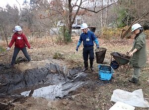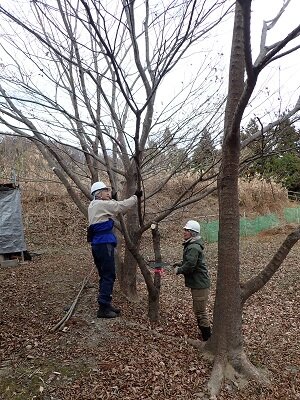 秩父の森周辺でクマ出没情報を受け、クマよけスプレーを準備し、各自クマ鈴を携帯しながら集団で行動することなどを確認して、それぞれ作業に移りました。