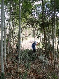 竹や広葉樹の間伐、刈り残しておいた草地の草刈り、同時に行っているイベント(草木染め:こちら)の手伝いなどを行い、午後は雨が強くなったので、柿の収穫や間伐した材の片づけ、刃物研ぎなどを行い、早めに終了しました。